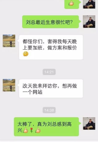 這么赤裸裸的夸牛商網(wǎng)好么?謝謝劉總對(duì)我們的認(rèn)可和信任,我們將責(zé)任更重的繼續(xù)前行,幫助更多中小微企業(yè)在網(wǎng)上?起來。