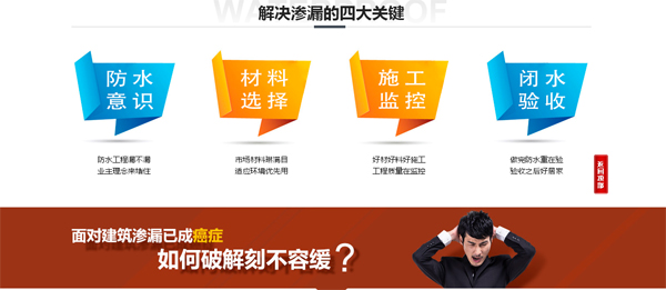 2014年底,胡總找到牛商網(wǎng)合作:他希望把線下營銷搬到線上,建1個防水材料批發(fā)采購的營銷型網(wǎng)站。牛商網(wǎng)張健林團(tuán)隊了解客戶情況調(diào)研行業(yè)后建議:“網(wǎng)站上不僅要賣材料,還要做工程!因為防水材料復(fù)購率低,批發(fā)采購業(yè)務(wù)模式單一,網(wǎng)絡(luò)營銷效果會打折;增加防水工程市場更大,也比對手多了差異化的服務(wù)優(yōu)勢,做得好可以挖到‘金礦’。”