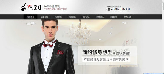 西服訂制針對的是高端人群,因此,網(wǎng)站必須高端大氣上檔次,而且還要有內(nèi)涵,方能體現(xiàn)出巴博服裝的品味;