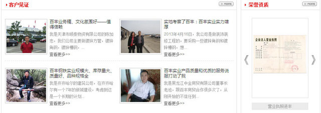 客戶見證:這些客戶在使用了百豐鋼材貿(mào)易的產(chǎn)品,感覺百豐鋼材貿(mào)易還不錯(cuò),只有真正能讓客戶產(chǎn)生好評(píng),這樣才能讓客戶站出來為您說話,客戶見證很好的證明了您使用百豐鋼材貿(mào)易的產(chǎn)品是正確的!