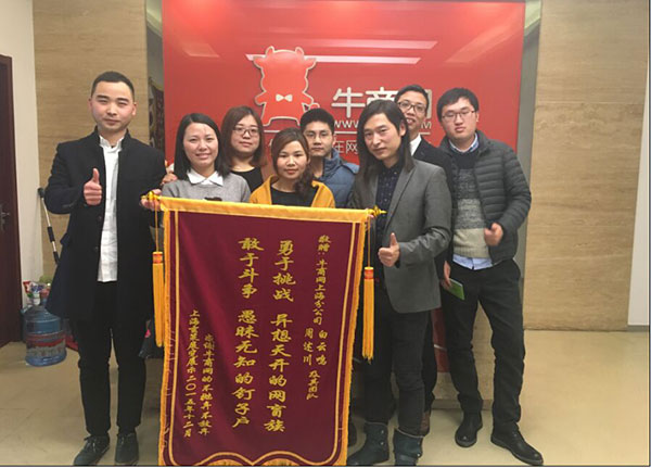 上海玄策展覽徐子山徐總給牛商網(wǎng)上海團(tuán)隊(duì)送錦旗