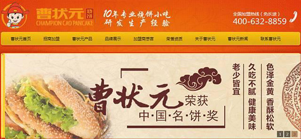 曹狀元主營(yíng)燒餅小吃加盟,2012年被中國(guó)飲食行業(yè)協(xié)會(huì)評(píng)為“中華名吃”,2013年被評(píng)為“中國(guó)誠(chéng)信企業(yè)”。到2013年,曹狀元食品已有燒餅加盟商100多家。“雖然我們線下招商情況不錯(cuò),但看到網(wǎng)絡(luò)營(yíng)銷是趨勢(shì),所以毫不猶豫地選擇了互聯(lián)網(wǎng)轉(zhuǎn)型”,曹狀元食品副董事長(zhǎng)曹樹(shù)旺說(shuō),“2013年11月學(xué)習(xí)網(wǎng)絡(luò)營(yíng)銷,12月就請(qǐng)牛商網(wǎng)建營(yíng)銷型網(wǎng)站。”