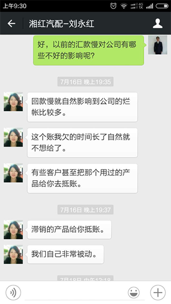 2、回款難讓湘紅汽配吃了許多啞巴虧。做網(wǎng)絡(luò)營(yíng)銷之前,湘紅汽配回款慢,一般的老客戶1個(gè)月回一次款,個(gè)別客戶拖欠很久,回款慢導(dǎo)致爛帳較多。有些客戶欠賬時(shí)間長(zhǎng)了就不想給了。個(gè)別奇葩客戶甚至想用二手產(chǎn)品、滯銷產(chǎn)品來抵賬。發(fā)貨給客戶通過物流公司代收貨款也導(dǎo)致回款難,物流公司代收了貨款,有主動(dòng)權(quán),想什么時(shí)候給就什么時(shí)候給,每次去收貨款都得排長(zhǎng)隊(duì),特別被動(dòng)。
