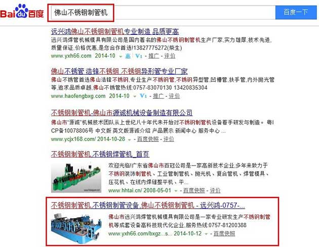 “佛山不銹鋼制管機 ”免費排在百度首頁第3名