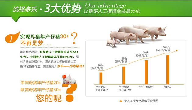 通過“8年的經(jīng)驗”和“4500個大型豬場”的詳細(xì)準(zhǔn)確的傳達(dá)信息,正面和側(cè)面反映了多樂豬人工授精的實力
