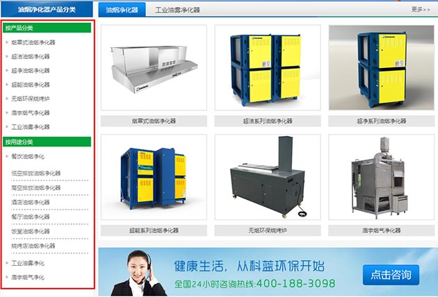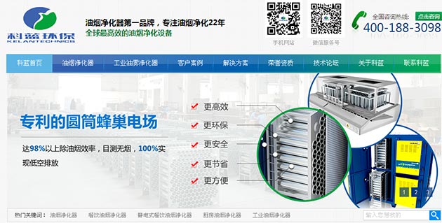 佛山科藍(lán)環(huán)保科技股份有限公司主要是做靜電式油煙凈化器的生產(chǎn)和服務(wù)商,營銷型網(wǎng)站還未上線時(shí),一直都是靠地面營銷,之前也有嘗試過自己建網(wǎng)站去維護(hù),但效果很差,也沒有心思去管理。