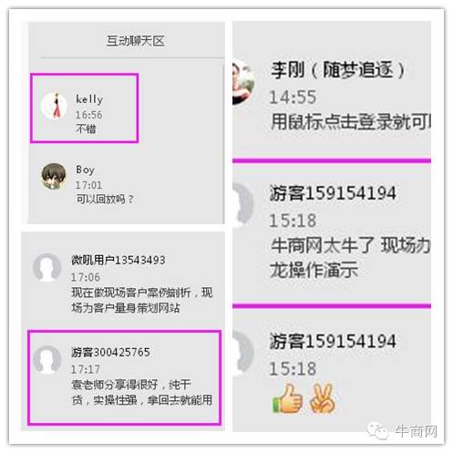 比如今天,我就親自帶了深圳的小組:牛人組、X戰(zhàn)隊、尋龍組到深圳牛商之家,針對牛商網(wǎng)的標(biāo)桿客戶,現(xiàn)場分析企業(yè)現(xiàn)狀,提供網(wǎng)絡(luò)營銷進階方案。3個小組當(dāng)場做出的網(wǎng)絡(luò)營銷策劃案,讓現(xiàn)場和觀看直播的企業(yè)都收獲了滿滿干貨。