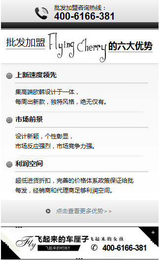 手機版網(wǎng)站具有介紹企業(yè)優(yōu)勢,在手機上面把公司、產(chǎn)品的優(yōu)勢展現(xiàn),這些都是精細提煉出來的優(yōu)勢點,每一點都是抓住客戶的關(guān)心點,客戶的痛處,深入客戶的心里進行展示,只有說到了客戶的痛處才能真正打動客戶的疑慮,進而產(chǎn)生詢盤,從而增加了產(chǎn)品的成交率!