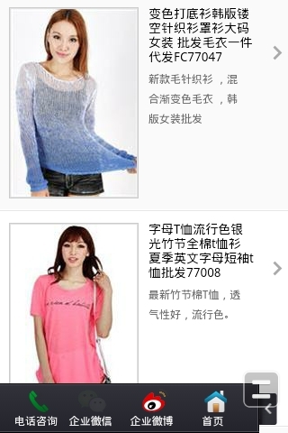 手機版網(wǎng)站和pc版網(wǎng)站一樣,具有產(chǎn)品展示,在手機上非常好的展現(xiàn)出來,而且圖片都是經(jīng)過系統(tǒng)自動處理過的,把圖片處理成適合手機上瀏覽的尺寸大小,不會因為圖片過大加載速度非常慢,而且在手機版網(wǎng)站下面都包含【電話咨詢】【企業(yè)微信】【企業(yè)微博】【返回首頁】按鈕,客戶對產(chǎn)品想要進一步了解的時候可以隨時發(fā)起電話、微信、微博交流,方便快捷。