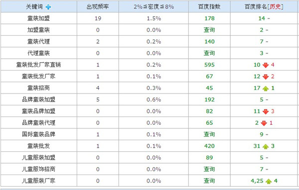 加盟童裝的關(guān)鍵詞排名是在第二位置