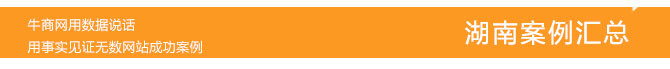 在璀璨星城,紅色長沙這座城市里,企業(yè)對網(wǎng)站建設的要求越來高,越來越多的企業(yè)開始注重網(wǎng)站建設,牛商網(wǎng)從2008年至今,已經(jīng)幫助超過6800家中小企業(yè)打造了網(wǎng)絡快速賺錢機器,讓這些傳統(tǒng)企業(yè)在互聯(lián)網(wǎng)迅速盈利。牛商網(wǎng)用數(shù)據(jù)說話,用事實見證無數(shù)網(wǎng)站成功案例。   下面就來看看我們在湖南地區(qū)有哪些客戶案例吧!  7*24小時服務熱線: 4000-333-087