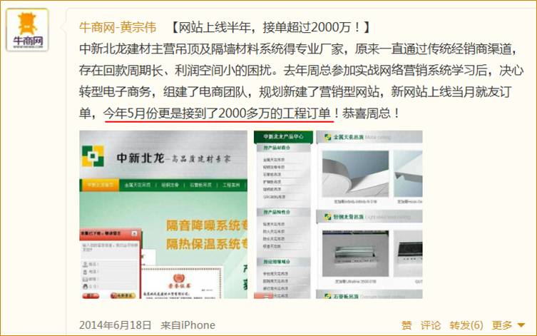 3、2013年5月,周總參加了單仁資訊的策略班和操作班課程,也參加了復訓,梳理了網絡營銷的思路,決定與牛商網合作網站建設事宜。
