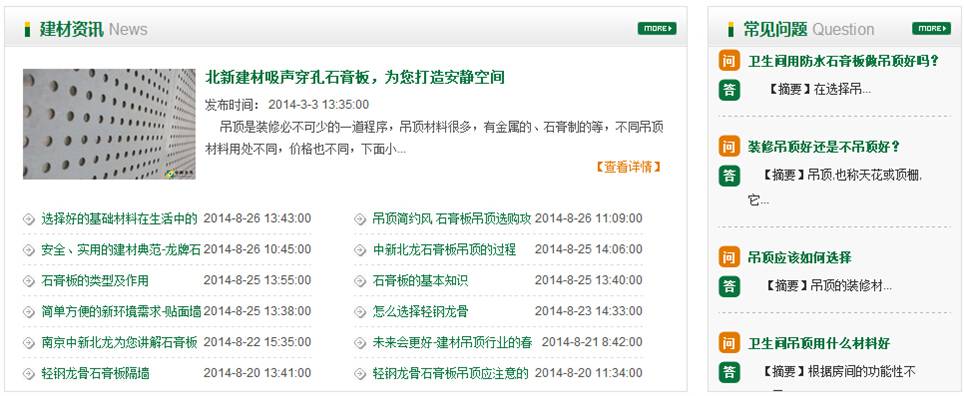 企業(yè)資訊板塊及時更新企業(yè)的信息,讓客戶隨時掌握最新動態(tài)。右側例舉客戶的常見問題,激發(fā)客戶想要繼續(xù)了解的興趣。