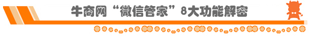 牛商網(wǎng)微信管家的8大功能打通了PC網(wǎng)站、手機(jī)網(wǎng)站及微信三方的管理后臺(tái),解決了運(yùn)營(yíng)人員因后臺(tái)太多造成的種種不便,降低了企業(yè)的人力成本,提高了工作效率,增強(qiáng)了運(yùn)營(yíng)效果。目前,牛商網(wǎng)微信管家已遠(yuǎn)遠(yuǎn)超越了市面上其他的第三方微信管理平臺(tái)。此外,最重要的是,如此功能強(qiáng)大的微信管家,現(xiàn)因牛商網(wǎng)在新三板掛牌,將在8月31號(hào)前免費(fèi)回饋給客戶使用!如果你也想使用牛商網(wǎng)微信管家,請(qǐng)點(diǎn)擊![]()