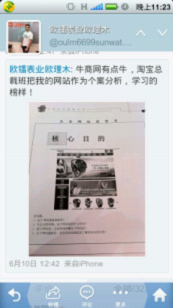 (圖三:歐總微博發(fā)表了淘寶作為成功網(wǎng)站案例來(lái)研究他的企業(yè)網(wǎng)站)