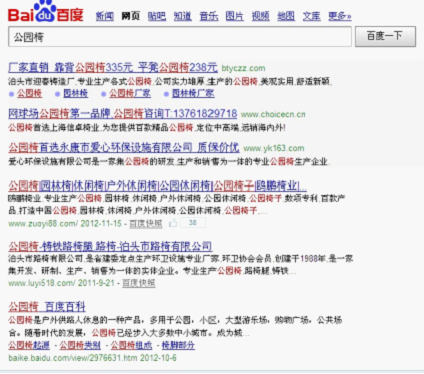 核心關(guān)鍵詞:“公園椅、公園椅子”自然排名排在百度首頁(yè)的第一位: