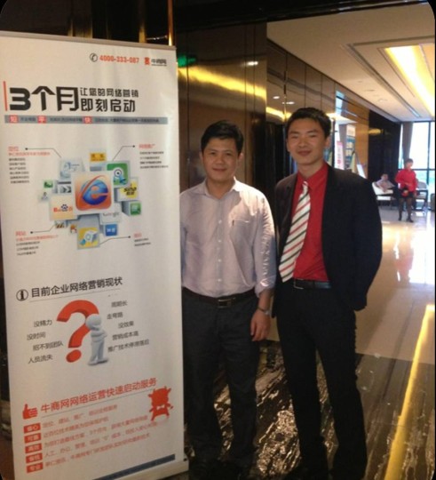 中山四維家居馬總與牛商網(wǎng)業(yè)務(wù)經(jīng)理巨佳鑫合影