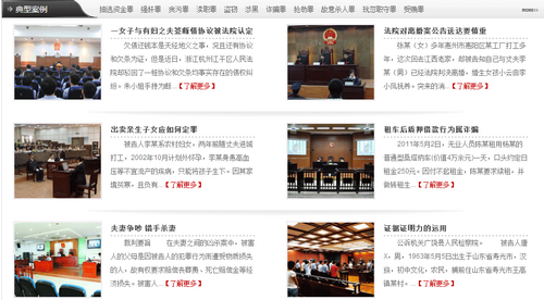 客戶了解了你是做什么的,接下來關(guān)心的肯定就是你的實力了,你是否有成功案例?你是否幫助其他人進行辯護的時候獲得成功?一個案例展示,把多年以來為其它客戶辯護成功的案例列舉出來,而且從多種主要的案例方面進行了分類,可以讓客戶方便快捷的找到類似的案例,增加客戶對網(wǎng)站的信任!