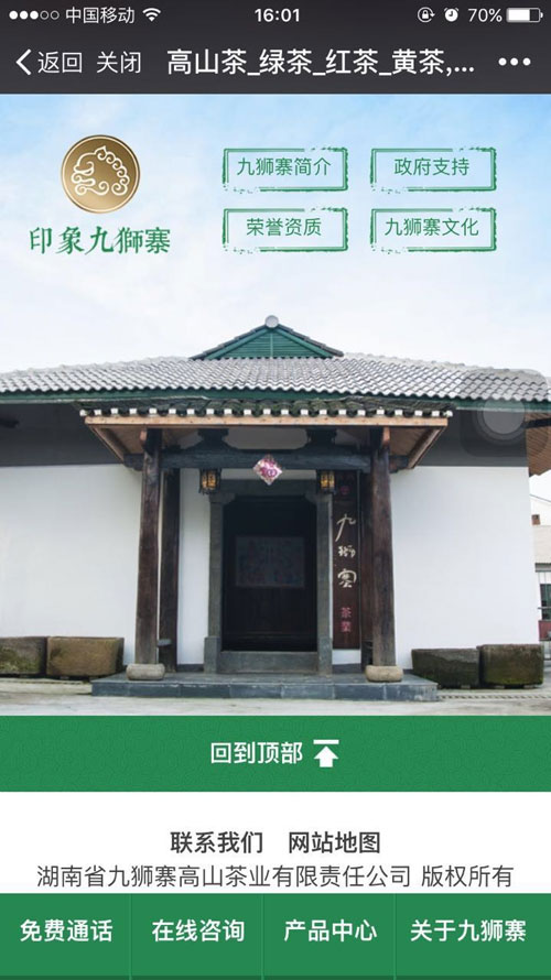 (九獅寨營銷型手機(jī)網(wǎng)站首頁部分截屏)