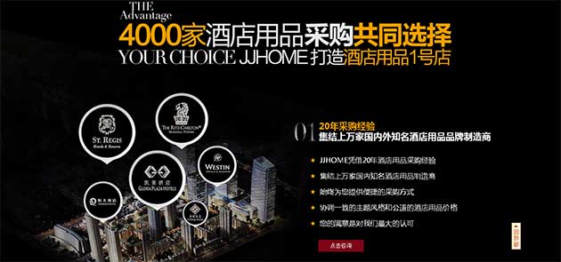 仇靜堅(jiān)把JJHOME營(yíng)銷型網(wǎng)站打造一站式綜合采購(gòu)平臺(tái),通過(guò)B2B 平臺(tái)、B2C 平臺(tái)、微博、博客,微信等平臺(tái)整合引流,展開全網(wǎng)營(yíng)銷。很多連鎖酒店通過(guò)營(yíng)銷型網(wǎng)站找到JJHOME,因?yàn)橐徽臼讲少?gòu)的便利他們主動(dòng)尋求合作。