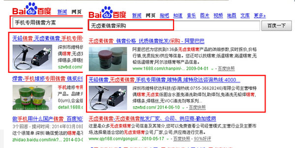 其中目標(biāo)關(guān)鍵詞“手機(jī)專用錫膏方案、無鹵素錫膏采購”免費排名在百度首頁