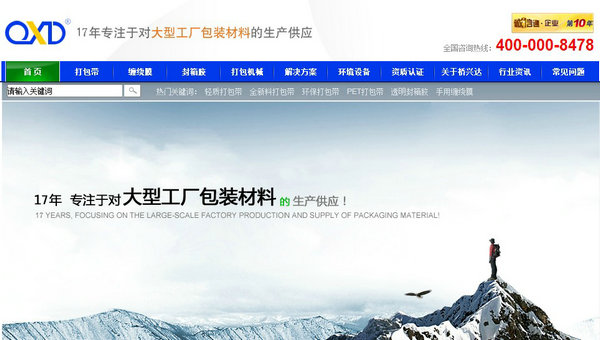 由于包裝材料非常大眾化,而橋興達的精準(zhǔn)目標(biāo)客戶是大企業(yè)、大工廠或者物流公司,在首屏就要讓目標(biāo)客戶看到橋興達就是他們要找的大型供應(yīng)商、廠家。