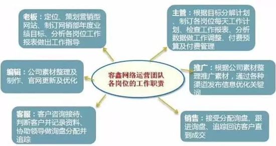 只有明確網(wǎng)銷運(yùn)營團(tuán)隊要有完善的組織結(jié)構(gòu),梳理好各崗位的工作職責(zé),才能實現(xiàn)團(tuán)隊的合理分工、按崗位計算績效。以下是張總網(wǎng)絡(luò)營銷團(tuán)隊的組織架構(gòu)及崗位工作職責(zé):