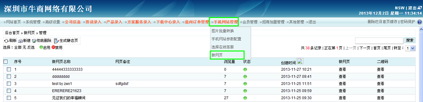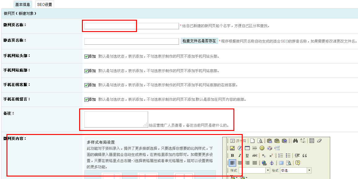 第一步:在我們的網(wǎng)站后臺(tái)中,“手機(jī)網(wǎng)站管理”模塊中的“微網(wǎng)頁(yè)”頁(yè)面,輕松設(shè)置