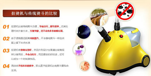 同時(shí)下面配合了比較法的設(shè)計(jì)展示,讓公司的掛燙機(jī)與傳統(tǒng)燙斗的比較,得出這里賣出去的掛燙機(jī)那是傳統(tǒng)的燙斗無法比較的!