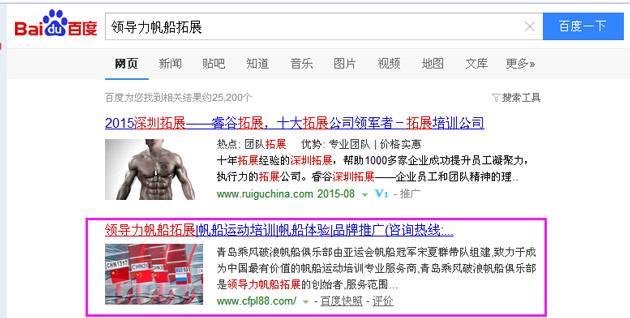 領(lǐng)導(dǎo)力帆船拓展關(guān)鍵詞免費(fèi)排到百度首頁(yè)第2名