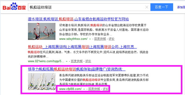 帆船運(yùn)動(dòng)培訓(xùn)關(guān)鍵詞免費(fèi)排到百度首頁(yè)第4名