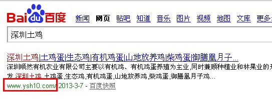 深圳土雞這個關鍵詞排在了百度首頁第一的位置,獲得了主要的客戶群體的流量來源
