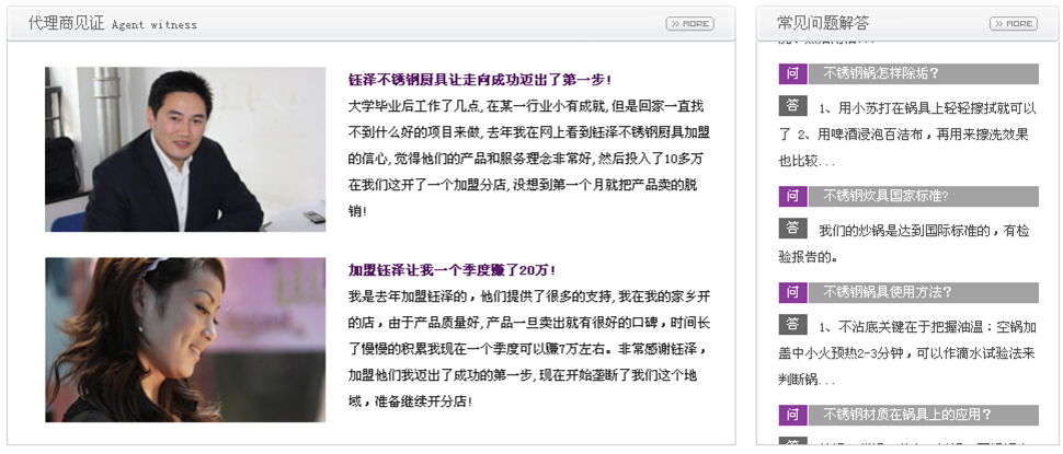 而牛商網(wǎng)的整個(gè)網(wǎng)站策劃以紫單、白色為主,并配合非常簡約、唯美的線條,構(gòu)畫出整個(gè)網(wǎng)站的架構(gòu),網(wǎng)站雖長,但并不會讓瀏覽者感覺到繁縟,反而有一種讓瀏覽者期待與驚喜的感覺,整個(gè)網(wǎng)站給瀏覽者的體驗(yàn)度非常好,這是讓瀏覽者能夠繼續(xù)瀏覽并促進(jìn)后期詢盤的前提;