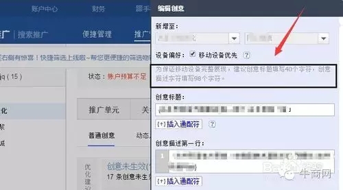 2、移動端的創(chuàng)意標題需要優(yōu)化,保證語句通順。附移動端創(chuàng)意修改方法: