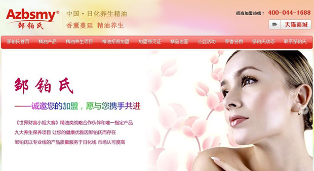 鄒鉑氏的營(yíng)銷型網(wǎng)站建設(shè)主要是招商加盟,在牛商網(wǎng)策劃師就在首屏廣告那里突出了鄒鉑氏是《世界財(cái)富小姐大賽》精油類戰(zhàn)略合作伙伴和唯一指定產(chǎn)品,塑造了高端的正面形象的同時(shí)更是給招商加盟的潛在客戶打了一針超強(qiáng)信心劑。